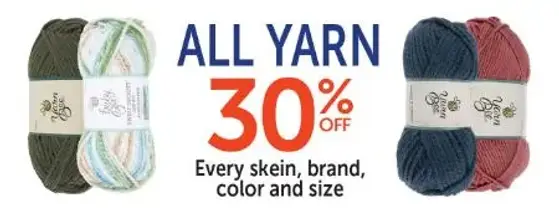 Save now! Shop in store and get 30% off on all yarn.