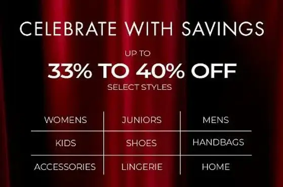 Celebrate with savings! Shop in store and get up to 33% to 40% off select styles.
