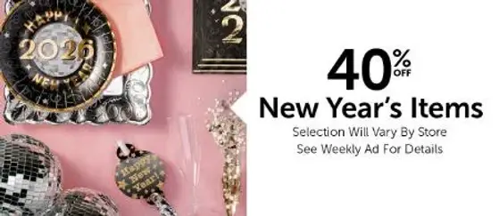 Don' miss this sale! Shop in store and save 40% off on New Year's items.