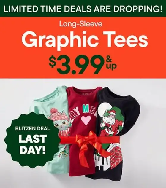 Last day! Shop in store and get long-sleeve graphic tees starting at $3.99.